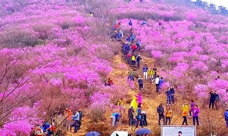 상암동 과 삼일동 사이에 우뚝 솟은 510m 산봉우리 산세가 그리 수려하지도 높지도 않은 영취산 해마다 봄이면 분홍빛 물결로 15만평 남짓 진달래 군락이 펼쳐져 전국의 탐방객이 찾아와 탄성을 지른다.