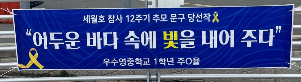 해당 작품은 학교 전광판뿐만 아니라 진도 팽목항에 현수막으로도 게시되어 의미를 더했다.