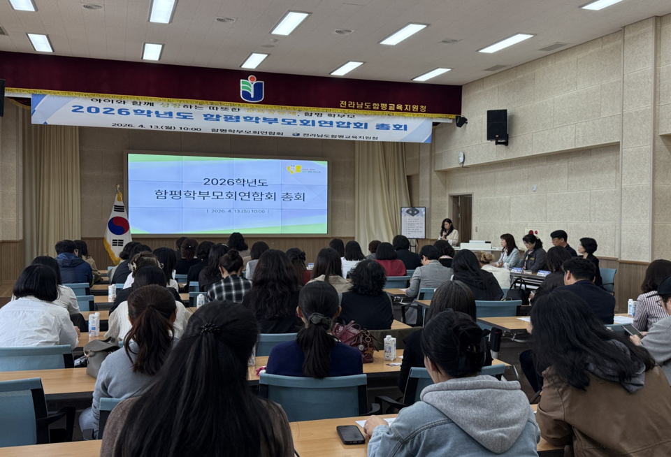 전라남도함평교육지원청(교육장 최은순)은 4월 13일, 관내 각급 학교 학부모회 임원 및 학부모들이 참석한 가운데 ‘2026학년도 함평학부모회연합회 총회’를 개최했다.