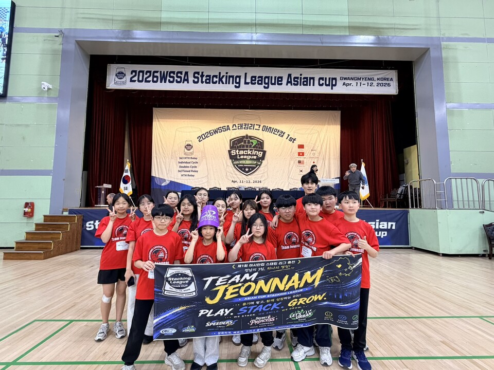 전라남도담양교육지원청(교육장 김진홍)은 지난 11일-12일 광명시민체육관에서 열린 ‘2026 세계스포츠스태킹협회(WSSA) 스태킹 리그 아시안컵’에서 청지정 늘푸름수북 마을학교 소속 학생들이 우수한 성적을 거뒀다고 밝혔다.