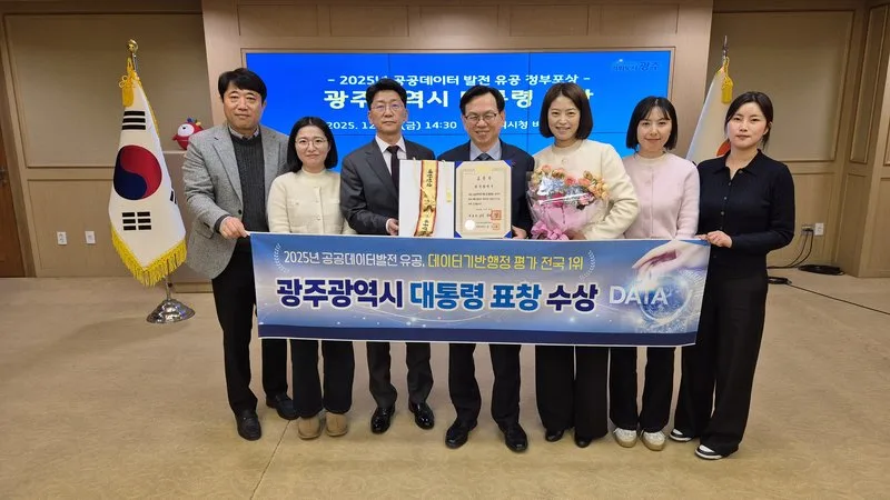 광주광역시(시장 강기정)는 행정안전부가 주관한 ‘2025년 공공데이터 발전 유공’ 정부포상에서 데이터기반행정 부문 대통령 표창을 수상했다.