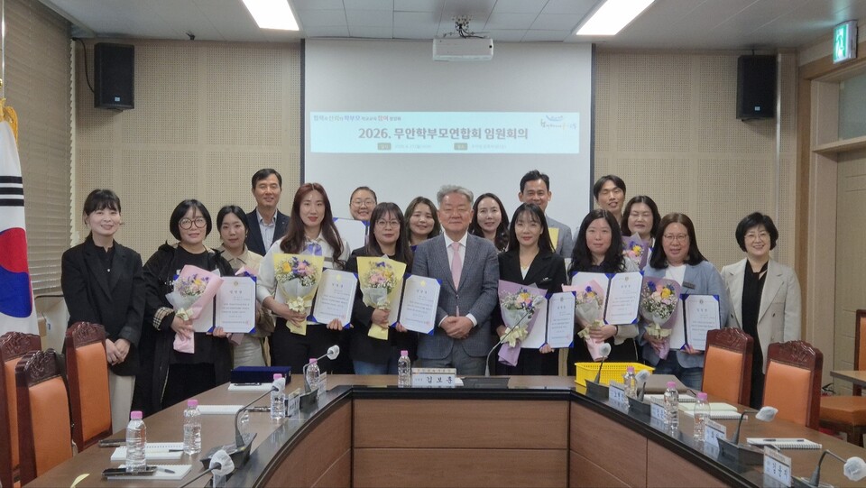전라남도무안교육지원청(교육장 김보훈)은 4월 27일 무안청 중회의실에서 2026학년도 무안학부모연합회 임원회의를 열고 새 임원 15명에게 임명장을 수여했다.