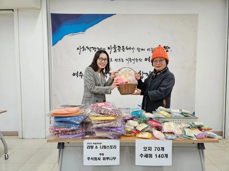 여수시는 지난 12월 2일 2025년 마을공동체 지원사업 참여 공동체인 ‘라향’과 ‘니팅스토리’가 겨울철 지역 어르신들을 위한 손뜨개 나눔 활동을 진행했다고 밝혔다. 두 공동체 회원들은 지역 어르신들에게 전달할 손뜨개 모자 70개와 수세미 140개를 제작해 여수사회적경제마을통합지원센터에 기부했다. 센터는 기부받은 물품을 노인주간보호센터를 운영 중인 사회적기업 ㈜미루나무에 전달했다. 여수시는 올해 전라남도 마을공동체 공모사업으로 40개 단체를 선정해 각 마을공동체가 마을 의제 발굴과 마을 문제 해결 활동을 이어갈 수 있도록 여수사회적경제마을통합지원센터와 협력해 지원하고 있다. 여수사회적경제마을통합지원센터 관계자는 “이번 기부 활동은 마을공동체가 꾸준히 이어온 문화 활동의 연장선”이라며 “앞으로도 마을공동체와 사회적경제기업이 다양한 협력 활동을 이어갈 수 있도록 연대 방안을 강구하겠다”고 말했다.