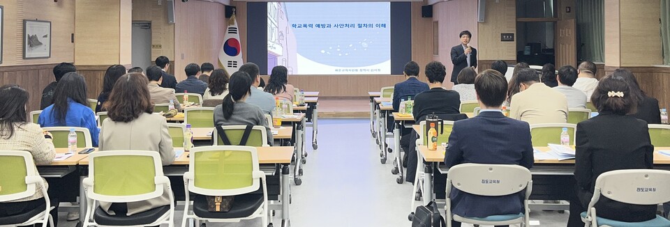 전라남도진도교육지원청(교육장 하숙자)은 4월 1일 진도교육지원청 대회의실에서 관내 초·중·고 교감 및 학교폭력 업무담당 교사를 대상으로 ‘2026 학교폭력 사안처리 이번 연수는 학교폭력 사안 처리의 전문성과 공정성을 높이고, 학교 현장의 실질적인 대응 역량을 강화하기 위해 마련되었다.