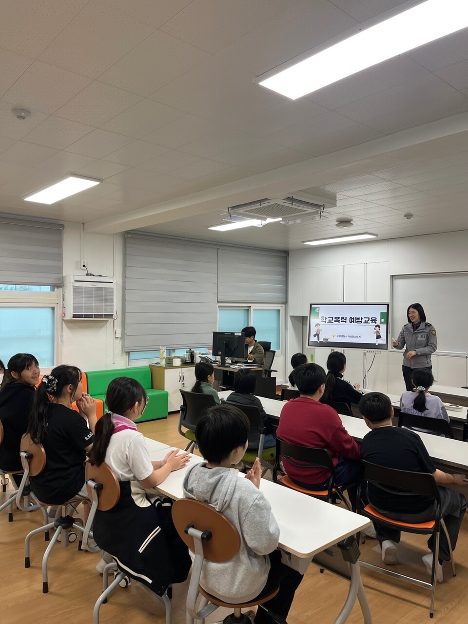 고학년 교육은 학교전담경찰관이 직접 참여해 ‘학교전담경찰관은 무엇인가’에 대한 설명과 함께 학교폭력의 다양한 유형, 사이버폭력의 위험성과 대처 방법을 실제 사례 중심으로 안내했다.