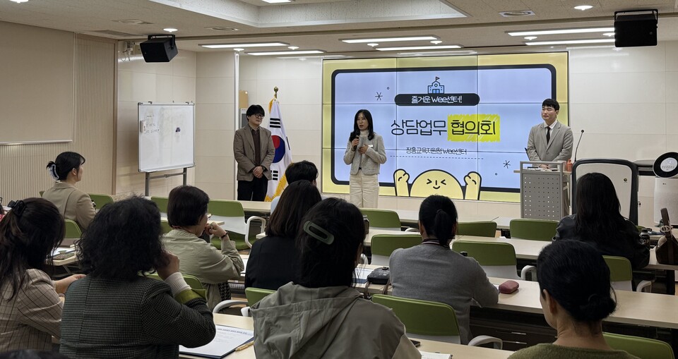 이번 협의회는 관내 학교 상담업무 담당교사 18명, Wee클래스 전문상담(교)사 8명, Wee센터 전문상담인력 6명을 대상으로 총 32명이 참석한 가운데 진행되었으며, 상담업무 수행에 필요한 실무 역량 강화 및 협력체계 구축을 목적으로 추진되었다.