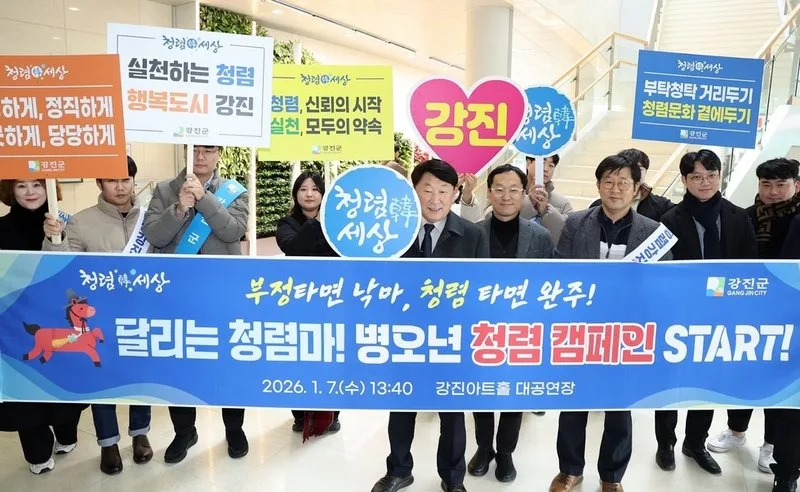 강진군이 병오년 새해를 맞아 공직사회 청렴 문화 확산을 위한 청렴캠페인을 추진하며, 새해 청렴 실천 의지를 다시 한번 다졌다.
