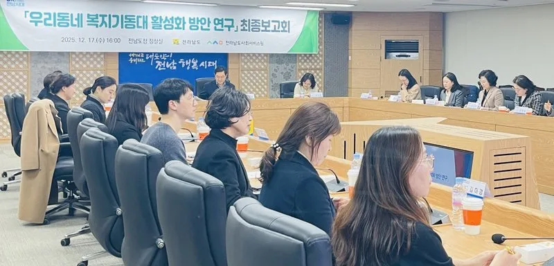 전라남도는 지난 17일 도청 정철실에서 ‘우리동네 복지기동대 활성화 방안 연구용역 최종보고회’를 개최했다. 보건복지국장을 비롯해 시·군 복지기동대 담당 팀장, 연구기관 및 자문위원 등 30여 명이 참석한 이번 보고회에서는 사업의 7년간 운영 성과 분석과 향후 실효성 있는 활성화 방안이 논의됐다.