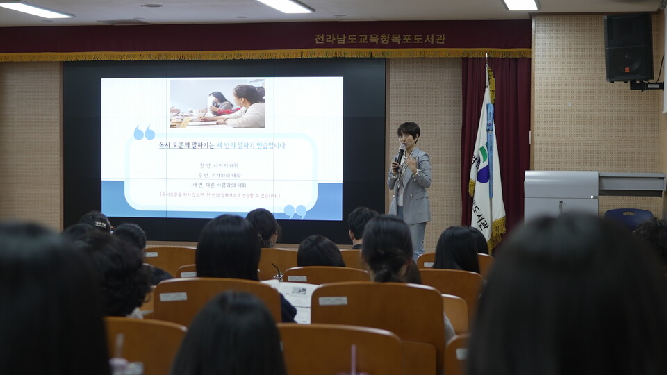 전라남도교육청목포도서관(관장 김춘호)은 지난 24일 도서관 시청각실에서 도내 학교도서관 담당자 80여 명이 참석한 가운데 ‘2026년 학교도서관 담당자 직무연수’의 첫 회차인 ‘독서동아리 운영법’ 특강을 성공적으로 마쳤다고 밝혔다.