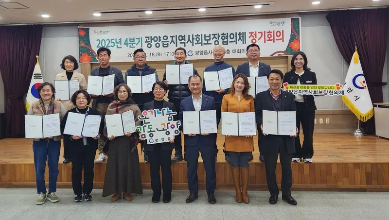 광양시 광양읍지역사회보장협의체(공공위원장 김미란, 민간위원장 송근배)는 지난 18일 광양읍사무소 대회의실에서 위원 21명이 참석한 가운데 2025년 4분기 정기회의를 개최했다.