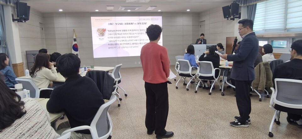 장흥교육지원청(교육장 정행중)은 3월 19일 대회의실에서 선배 공무원과 MZ 공무원이 함께 참여하는‘라떼와 아아의 세대공감 토크콘서트’를 열어 세대간 이해와 공감을 높이는 공감소통 연수를 운영했다.