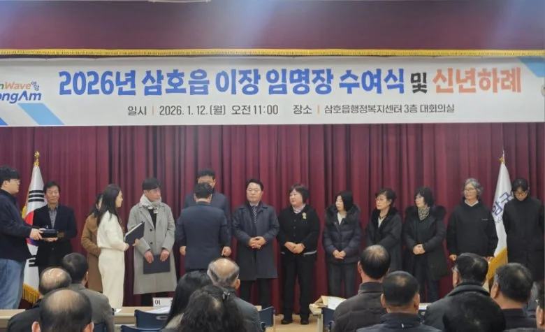영암군 삼호읍과 신북면이 8일 각각 행정복지센터에서 ‘2026년 이장 임명식과 신년하례회’를 열어 지역의 새해를 알렸다.