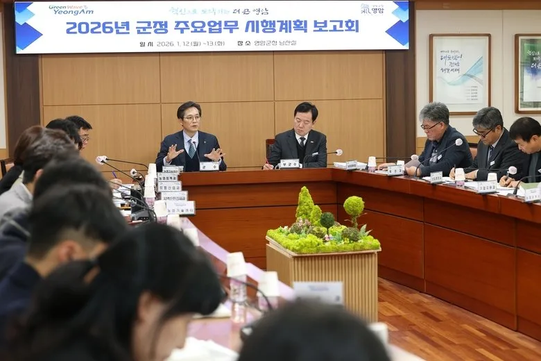 영암군은 12~13일 군청에서 올해 군정 전반의 방향성과 실천 전략을 점검하는 '2026 군정 주요업무 시행계획 보고회'를 개최했다.