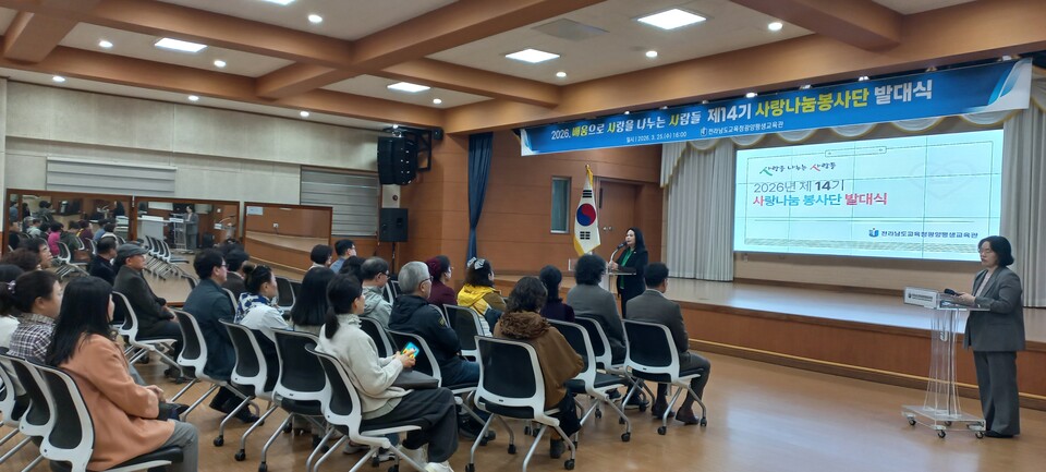 전라남도교육청광양평생교육관(관장 오준경)은 3월 25일, 교육관 강당에서 봉사단원 80여명이 참석한 가운데 제14기 사랑나눔봉사단 발대식을 개최했다고 밝혔다.