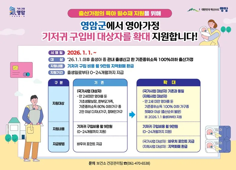 영암군, 출생아 70% 수준으로 기저귀 지원 가정 확대