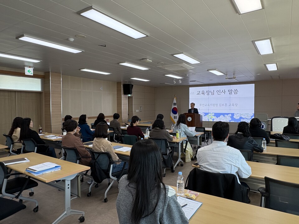 전라남도무안교육지원청(교육장 김보훈) 위(Wee)센터는 4월 7일(화), 무안교육지원청 대회의실에서 관내 위(Wee)클래스 전문상담교사 및 전문상담인력 30여명을 대상으로 ‘2026년 위(Wee)프로젝트 전문상담인력 역량강화 연수’를 개최하였다.