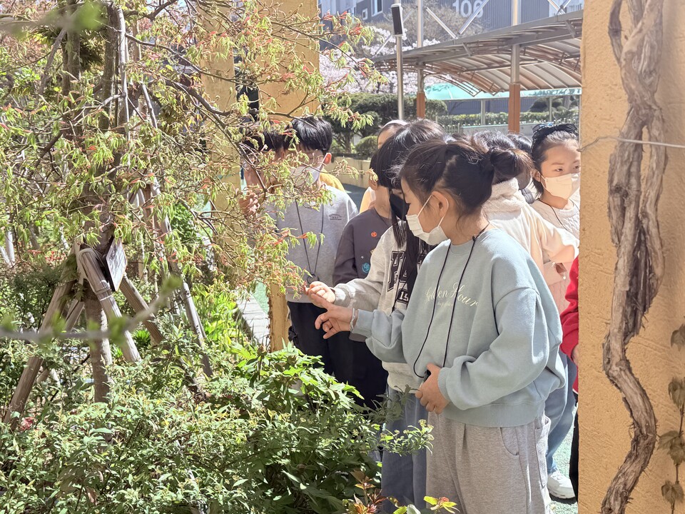 이번 교육은 학교숲체험 강사와 함께 학년별 수준에 맞춘 활동으로 운영되었으며, 학생들이 자연을 직접 느끼고 이해하는 체험 중심 생태교육으로 진행됐다. 1학년은 봄철 학교숲의 자연을 관찰하며 소나무가 교목임을 알아보고, 자연에 인사하기 등 오감을 활용한 체험활동을 통해 자연과 친숙해지는 시간을 가졌다. 2학년은 학교의 교화인 철쭉을 중심으로 다양한 풀과 나무, 곤충을 관찰하며 생명의 소중함과 자연 속에서 살아가는 모습을 이해했다. 3학년은 학교숲의 식물과 곤충을 채집하여 루페로 관찰하고, 생태의 특징과 살아가는 방식을 탐구하는 활동을 통해 보다 심화된 학습을 경험했다.