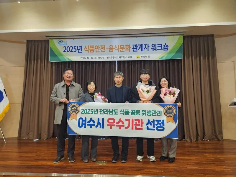 여수시, 전남도 2025년 식품·공중 위생업무 평가 우수기관 선정
