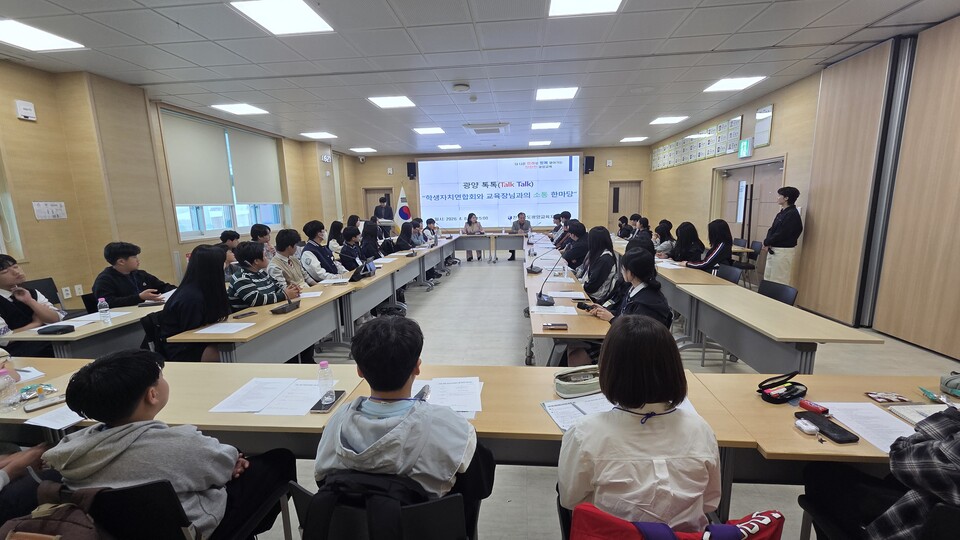 전라남도광양교육지원청(교육장 김여선)은 4월 8일 광양교육지원청 햇살동에서 「광양 학생자치연합회와 교육장님과의 소통 한마당」을 열고 학생과 직접 소통하는 자리를 마련했다.
