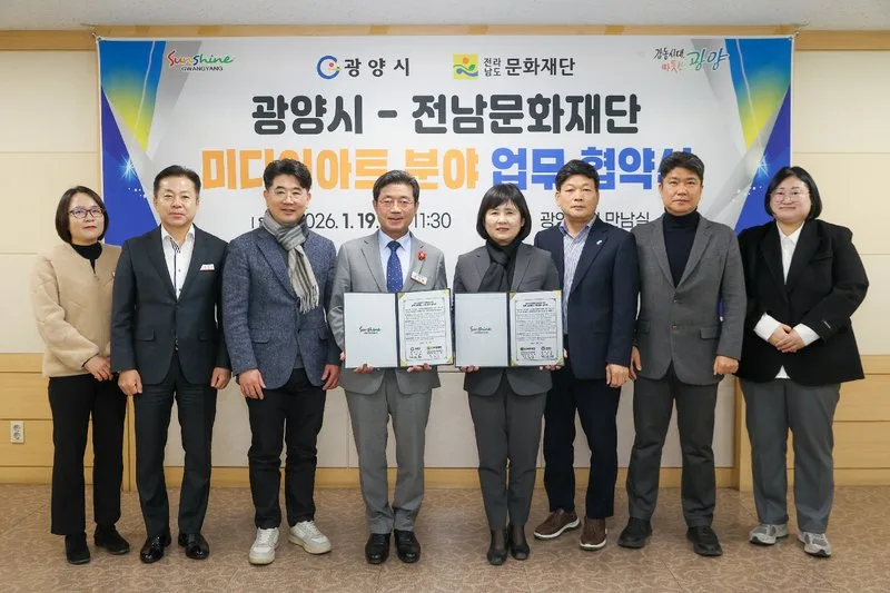 광양시는 지난 1월 19일 광양시청 만남실에서 전라남도문화재단과 미디어아트 기반 문화예술 협력을 위한 업무협약을 체결했다고 밝혔다.