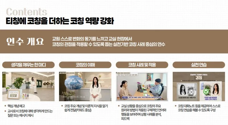'티칭에 코칭을 더하는 코칭 역량 강화 원격연수’는 교실 속 대화를 중심으로 교사의 역할 변화를 다룬다.