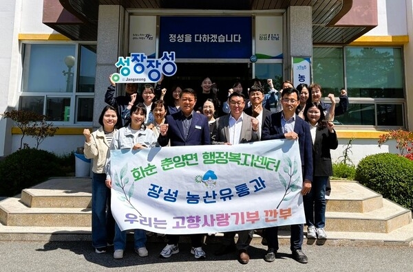 장성군 농산유통과와 화순군 춘양면 행정복지센터가 지난 16일 장성군 농업기술센터에서 상호 고향사랑기부를 실천했다.