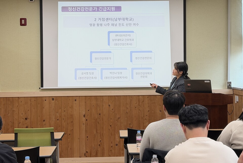 특히 이날 설명회에는 우리 지역 정신건강전문가 긴급지원팀을 운영 중인 남부대학교의 정신건강전문가가 직접 참석해 사업 설명회를 진행했다.