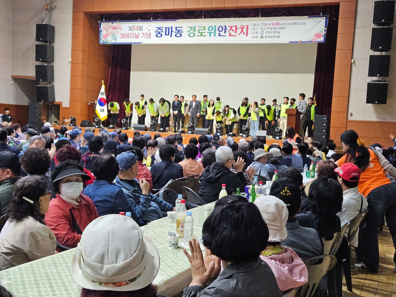 광양시 중마동은 4월 19일 광양시 청소년문화센터 체육관에서 지역 어르신 3,000명을 초청해 ‘제54회 어버이날 기념 경로위안잔치’를 개최했다고 밝혔다.