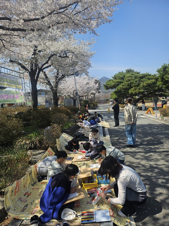 또한 벚꽃 나무 아래에서 진행된 시화 및 그림 그리기 활동은 학생들에게 특별한 경험을 선사했다.