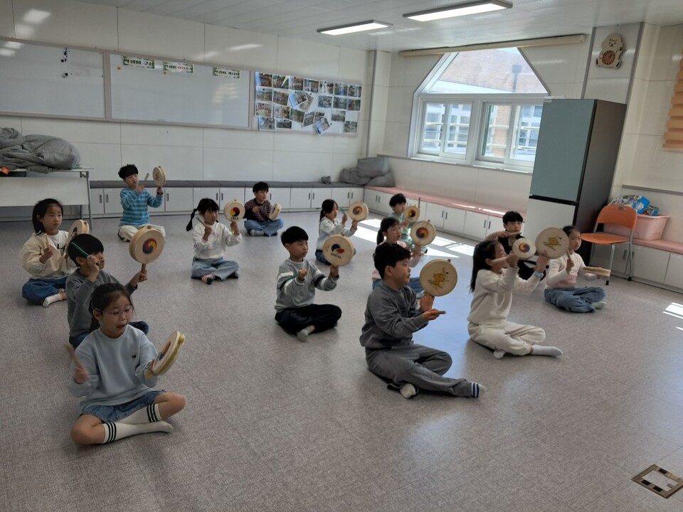손에 쥔 소고와 울림이 깊은 징 소리는 교실을 채우고, 그 안에서 아이들은 자연스럽게 우리 가락과 가까워졌다.