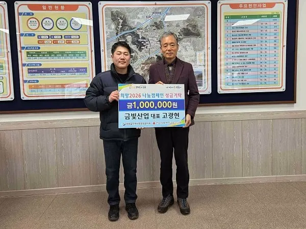 장흥읍 소재 건설업체 금빛산업(대표 고광현)은 26일 장흥읍 행정복지센터를 방문해 지역의 어려운 이웃들을 위해 사용해 달라며 성금 100만 원을 기탁했다.