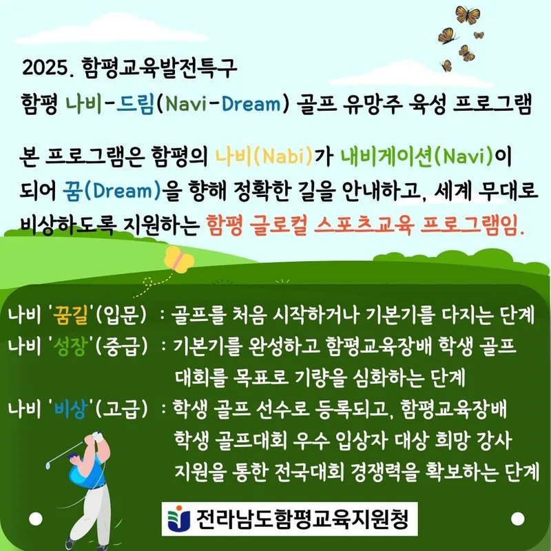 ![[골프교육의 메카, 함평] 나비-드림 골프 유망주 육성 프로그램 성료 - 교육 뉴스 | 코리아NEWS](https://res.cloudinary.com/dkz9qbznb/image/upload/v1767044603/jeonnam_edu_org/f8d50f4ace22517aafd31f517b2225e9.webp)