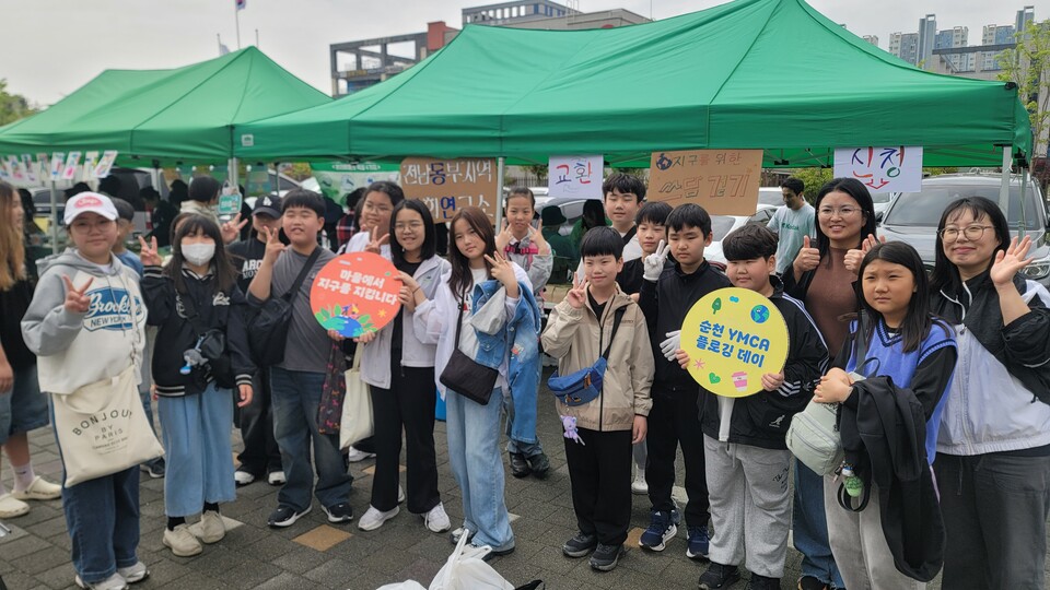 전라남도 순천부영초등학교는 4월 18일 순천 신대 로컬푸드 일대에서 5학년 학생과 교사, 학부모가 참여한 ‘지구의 날 기념 캠페인’에 참여해 자원순환과 환경보호 활동을 펼쳤다.