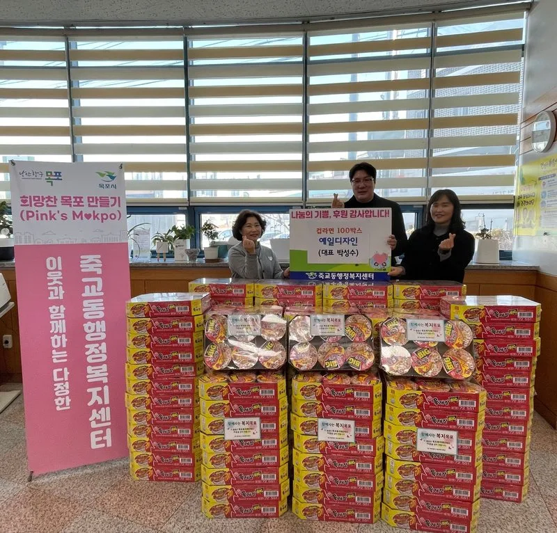 예일디자인(대표 박성수)은 지난 27일 죽교동 관내 취약계층을 돕기 위해 컵라면 100상자를 후원했다.