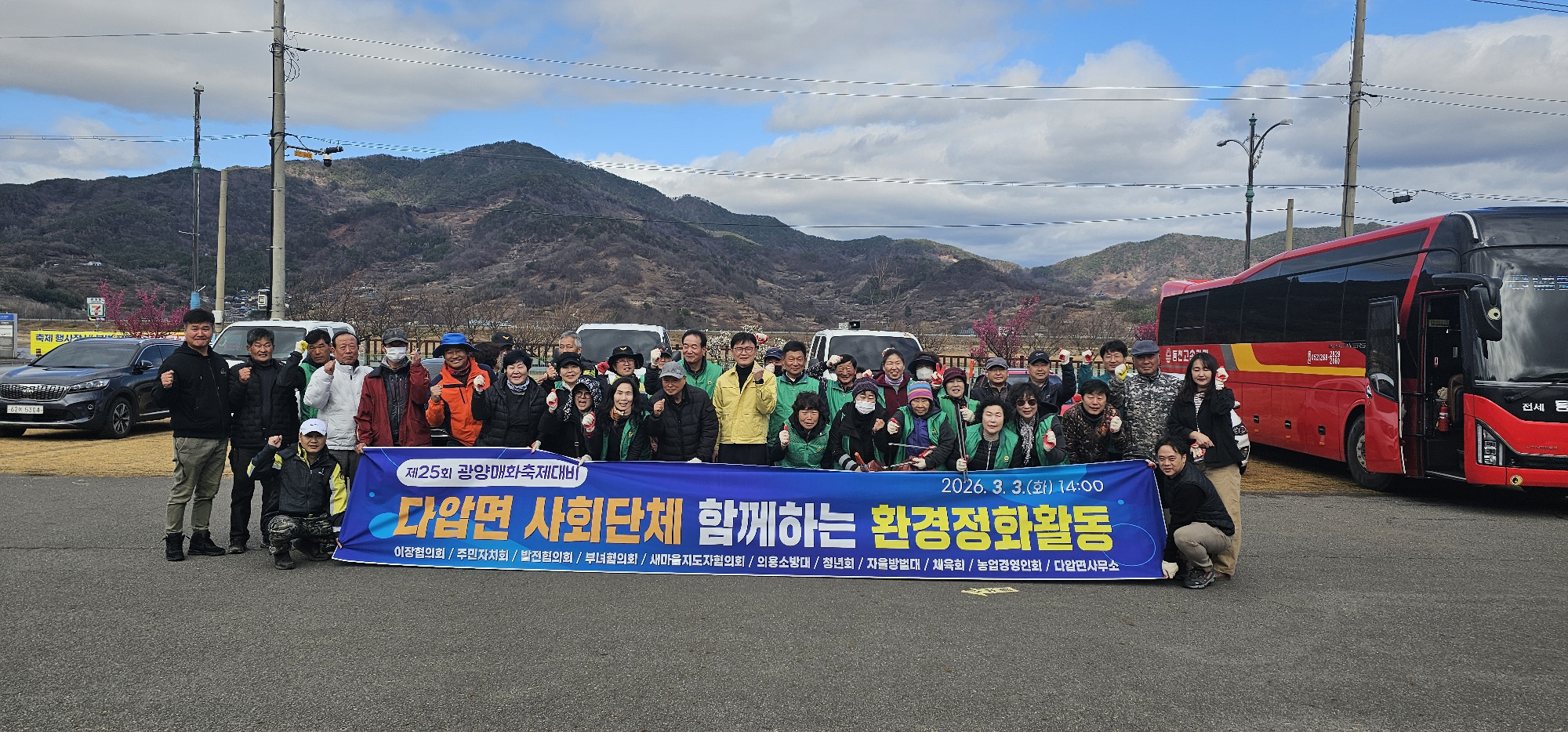 광양시 다압면은 제25회 광양매화축제를 앞두고 상춘객을 맞이하기 위해 지난 3일 축제장 일원에서 사회단체와 함께 환경정비 활동을 실시했다.