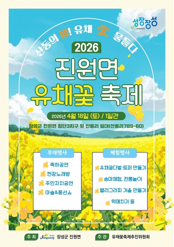 진원면이 주최하고 유채꽃축제추진위원회가 주관하는 이번 축제는 진원면의 관문인 산동리 일대 약 1.2㎞ 구간에 가득 피어난 유채꽃밭에서 펼쳐진다.