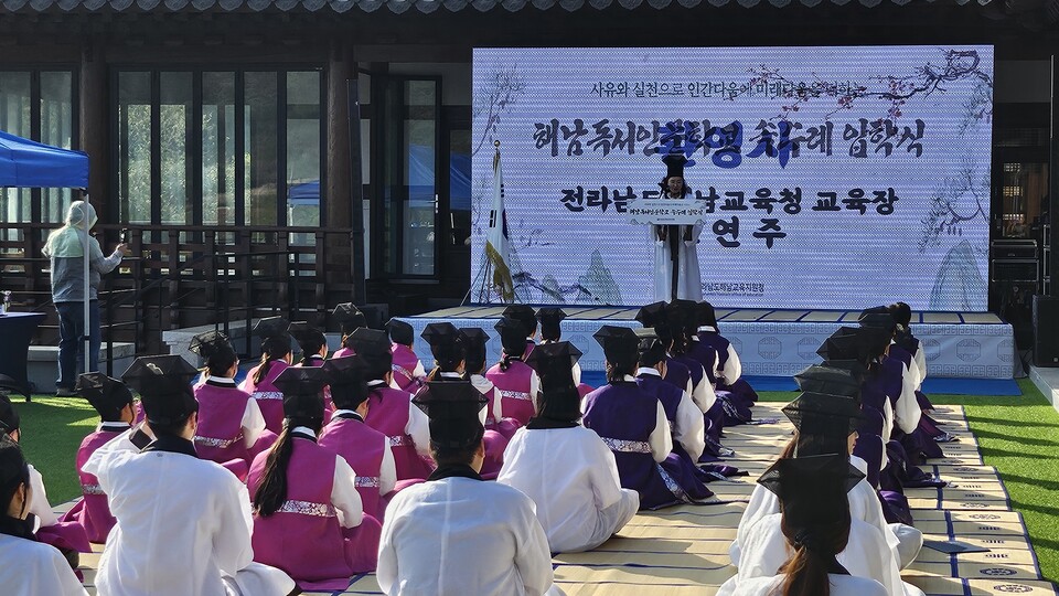 해남의 인문학적 전통과 공간의 의미를 살린 이번 행사는 해남서초등학교 땅끝어린이국악오케스트라의 축하공연으로 시작해 전통의 울림을 전했다.