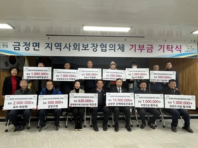 이날 기탁식에서 면문예체육진흥회는 1,000만 원, 영암우리새마을금고는 100만 원, 금정교회는 50만 원을 각각 기부했다.