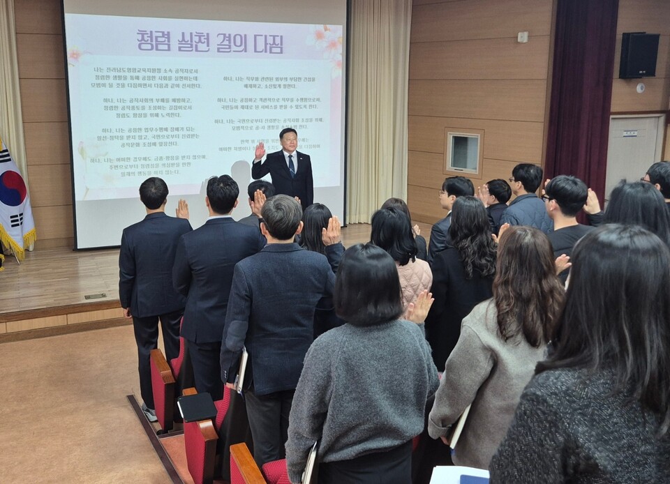 김광수 교육장은 “청렴은 선택이 아닌 공직자의 기본”이라며 “새학기를 맞아 다짐한 오늘의 약속이 선언에 그치지 않고, 일상 속 실천으로 이어져 지역사회가 체감하는 신뢰받는 영암교육이 실현되기를 바란다.”라고 말했다.