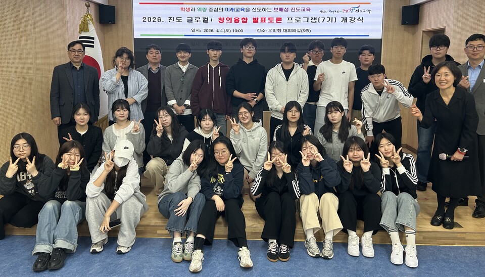 전라남도진도교육지원청(교육장 하숙자)은 지난 4월 4일 진도교육지원청 대회의실에서 고등학생, 교원, 학부모 등 30여 명이 참석한 가운데 「글로컬⁺ 창의융합 발표토론 프로그램(7기)」 개강식 및 명사 특강을 개최했다.