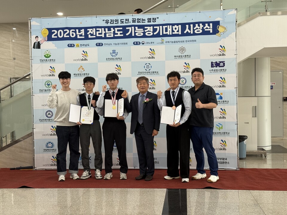 금상을 수상한 3학년 송민수 학생은 “학교의 전폭적인 지원과 선생님들의 세심한 지도 덕분에 훈련에만 집중할 수 있었다”며, “8월 인천에서 열리는 전국대회에서도 전남 기술의 저력을 보여줄 수 있도록 최선을 다하겠다고”고 소감을 밝혔다.