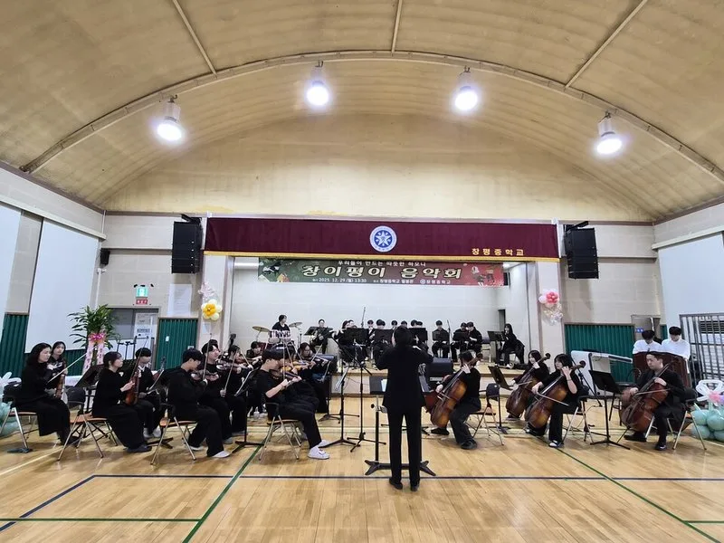 창평중학교(교장 송영미)는 지난 12월 29일(월) 본교 월봉관(체육관)에서 전교생 및 학부모, 창평초등학교 학생들을 대상으로 '창평중 오케스트라 작은 음악회 및 예술 초청 공연'을 성공적으로 개최했다.