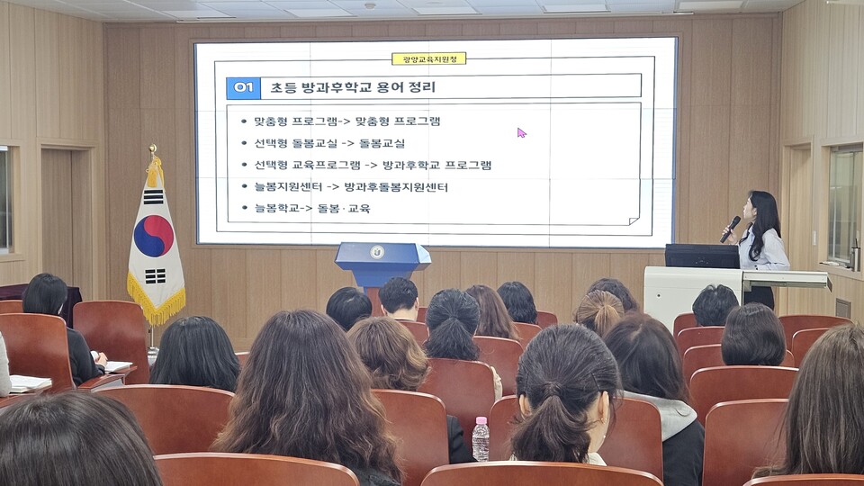 광양교육지원청(교육장 김여선)은 2026년 4월 16일(목) 햇살동 시청각실에서 관내 초등 돌봄 및 초·중등 방과후학교 담당자를 대상으로 연찬회를 개최하여 안전하고 공정한 돌봄 및 방과후 운영 방안을 공유하였다.