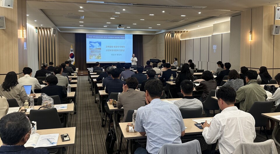 연수는 2026 개정 교육활동보호 매뉴얼을 중심으로 ▲ 교육활동보호 매뉴얼의 이해 ▲ 지역교권보호위원회 심의 및 판단 기준 ▲ 주요 판례 분석 및 현장 질의응답 등 실제 사례 중심으로 진행됐다.
