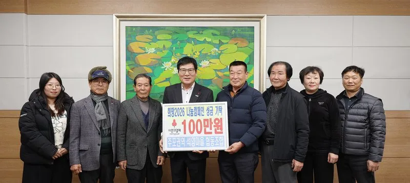 함평군 주포권역 석양마을 협동조합(대표 박내오)이 이웃돕기 성금으로 100만 원을 기탁했다.