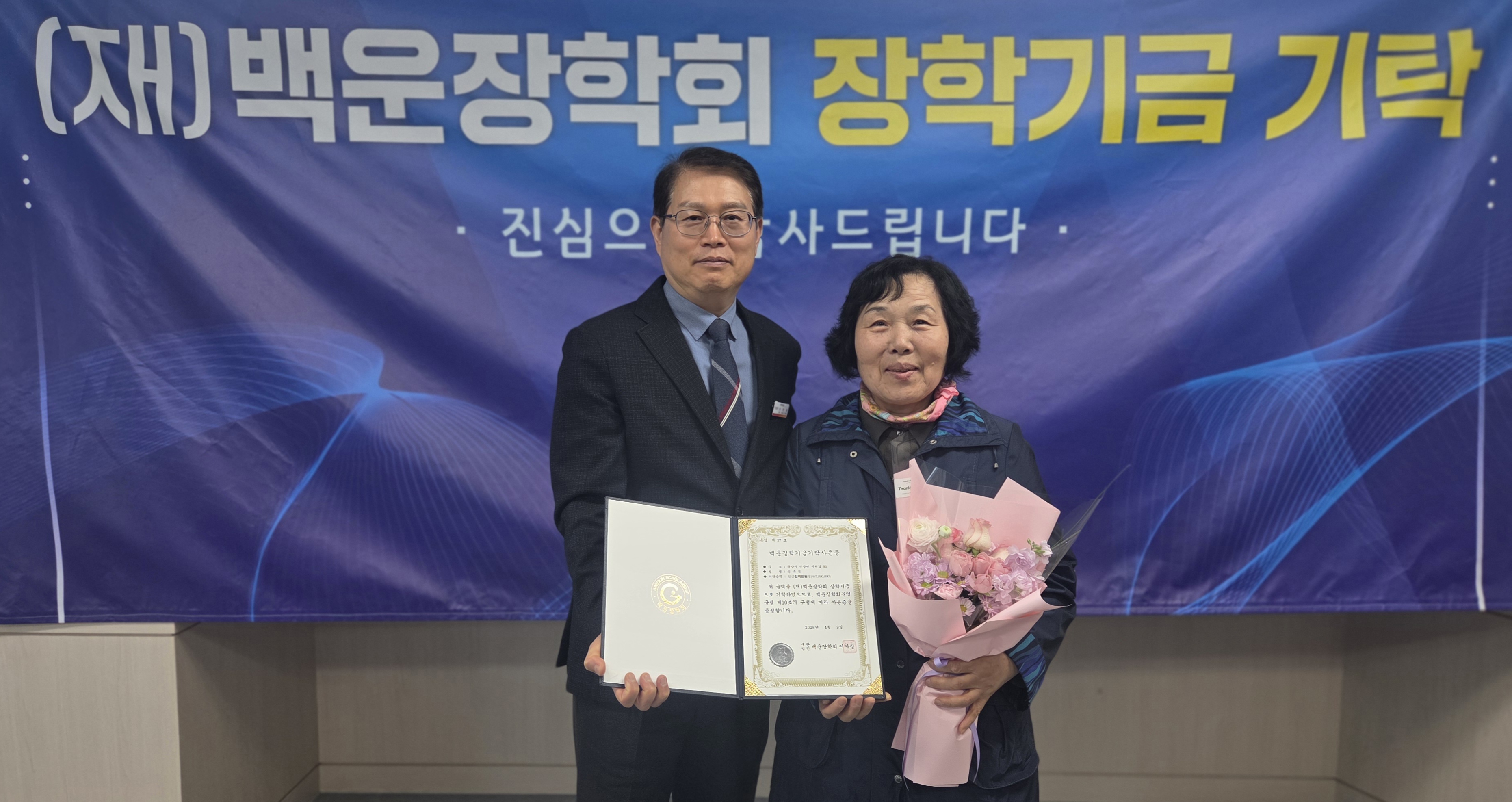 한편, (재)백운장학회는 지역사회 공헌과 인재 육성을 위해 1991년 설립됐으며, 시민과 기업 등의 기부로 244억 원의 기금을 조성했으며, 지금까지 18,616명의 학생에게 총 153억 원의 장학금을 지급했다.