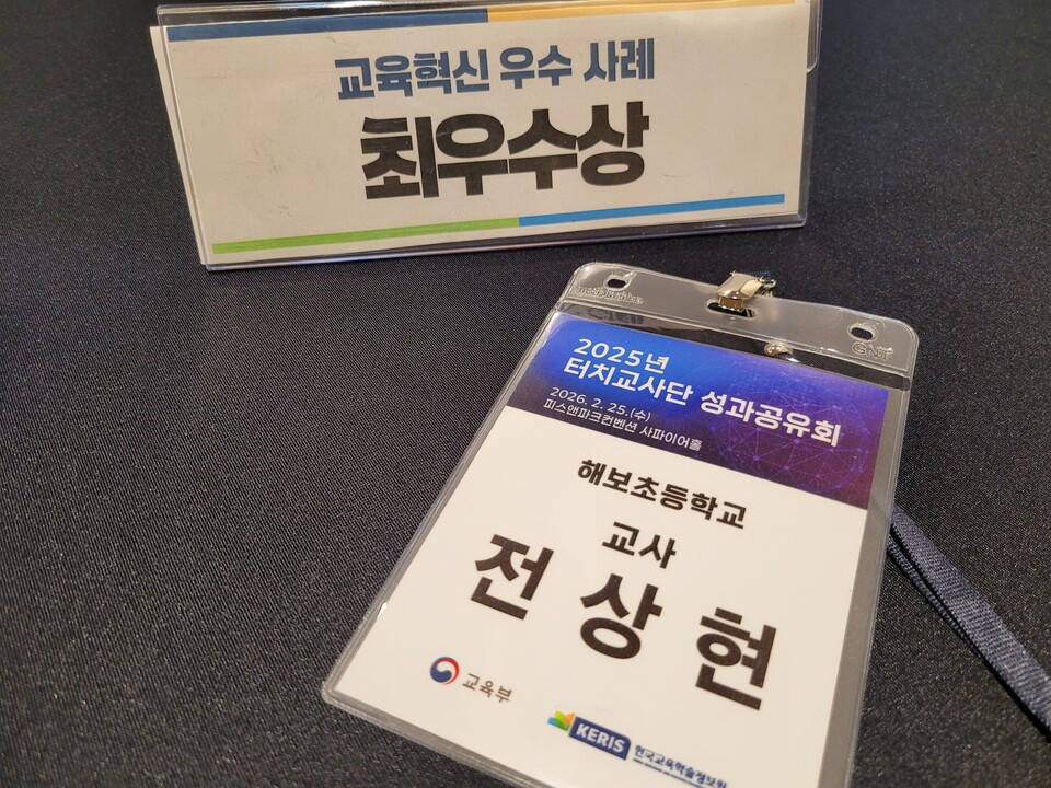 전남 함평 해보초등학교(교장 신미경) 전상현 교사가 한국교육학술정보원(KERIS) 주관 ‘2025년 터치교사단 활동지원 우수사례 공모전’ 교육혁신 현장 적용 부문에서 최우수상을 수상했다.