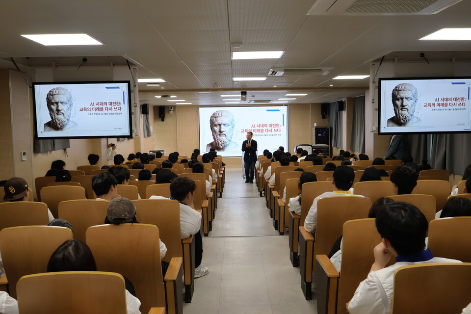 이번 특강의 주제는 'AI 시대의 대전환: 교육의 미래를 다시 쓰다' 로, 급변하는 AI 시대를 살아갈 학생들에게 미래 교육의 방향과 올바른 가치관을 심어주기 위해 마련됐다.