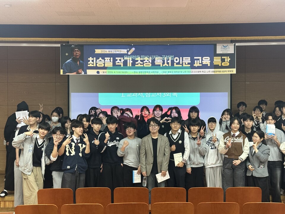 봉황고등학교(교장 김혜정)는 2026학년도 자율형 공립고 2.0 운영과제로 독서·인문교육 브랜드 ‘리브로상스(Librorenaissance)’를 론칭하고, 지난 4월 1일 「공부머리 독서법」의 저자 최승필 작가를 초청해 특강을 운영했다.