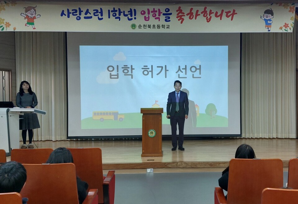 순천북초등학교 장재수 교장 선생님은 환영사에서 “오늘 입학하는 여러분은 순천북초등학교의 새로운 가족입니다.